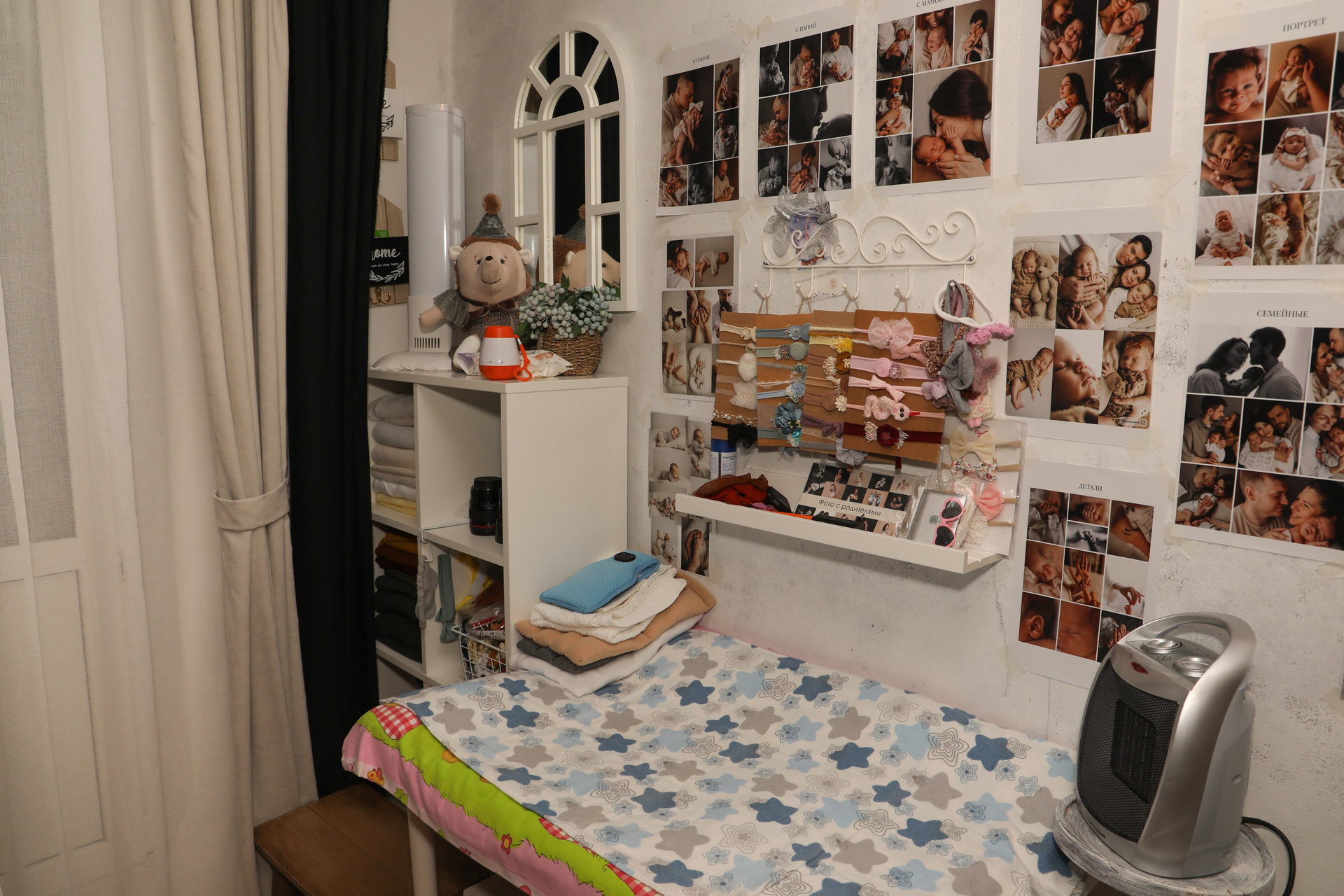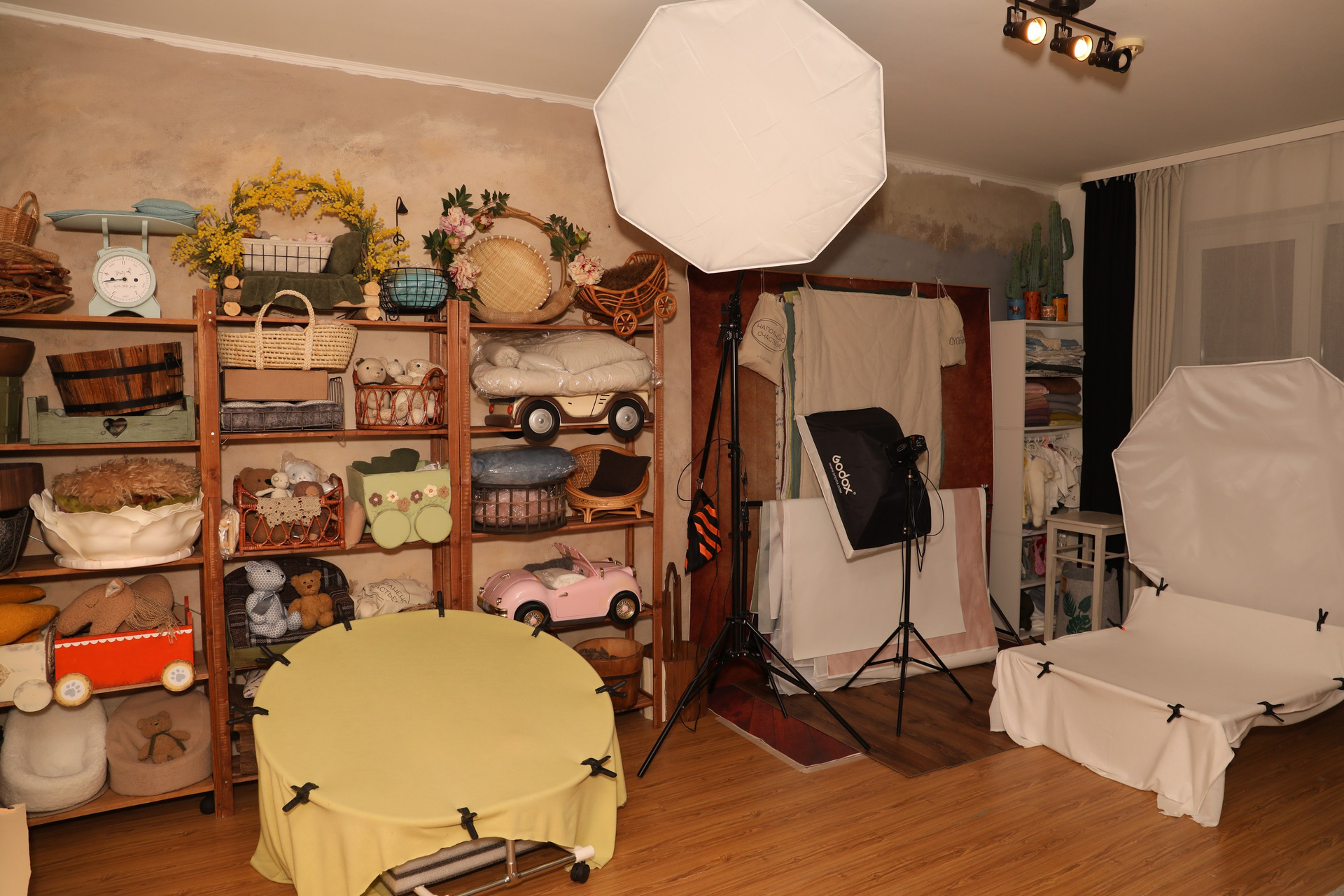 - Большой выбор реквизита и аксессуаров. В студии у вас есть возможность выбрать на свой вкус ткани и бадеечки, вещички для своих деток. Реквизит всегда под рукой.